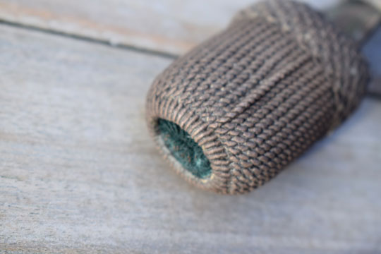 Worn slide. The sword knot shows some patina.