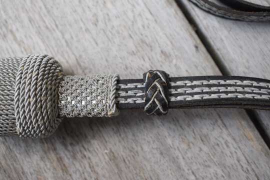German WWII Wehrmacht Heer officers bayonet knot. (Portopee). Minty grey leather strap with three alloy wires and intact slide. Silver stam, crown and achorn. Light brown core.