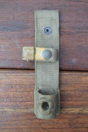 South Africa bayonet frog for Uzi bayonet. A very nice South African bayonet frog for the UZI S1. bayonet , the R1, No.4, No.7 and No.9 bayonets, made of green khaki.