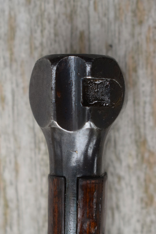 Dutch Mannlicher M 1895 calvalry carbine. New Model. Serial number: 6482 P on the crossguard. Excellent+ slim blued double edged blade with Dutch maker marking: HEMBRUG and an inspection marking: Crown over B (= Inspector E. B. Brosssois ) on the ricasso.