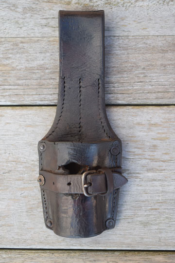Polish M 1924 bayonet frog: Excellent dark brown leather bayonet frog with a T-shaped opening to carry the Polish made WZ Mauser rifle and carbine bayonets: M1922, M1924 and M1928, but also Polish used German M 1898/05 bayonets and French 1886, 1886/16 bayonets. 6 rivets and washers and a retaining strap with a steel buckle.