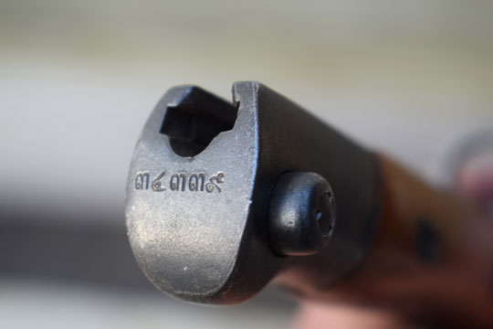 Siam Mauser M 1902 rifle/ Type 66. Serial number on the pommel in Siamese digits. Near Mint bright finished fullered blade with very crisp Siamese digits on the ricasso (= Rattanakosin Sok 121= 1903). Bright finished pommel and crossguard with muzzle ring: MRD 16 mm. T-O slot in pommel.