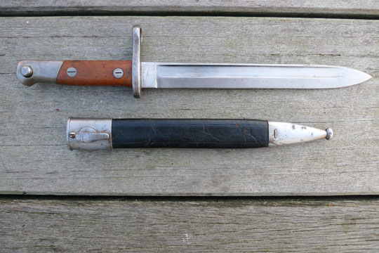 Spanish M 1893 bayonet straight back, second model. (ABCN385-2)(K105)(JN175-1-3)