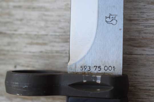 Note: this bayonet model does not have a serial number on the ricasso, but a code number: 593 75 001