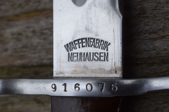 Swiss M 1914 bayonet by WAFFENFABRIK NEUHAUSEN. (ABC N 1314)(K 389) (JN 185-3)
