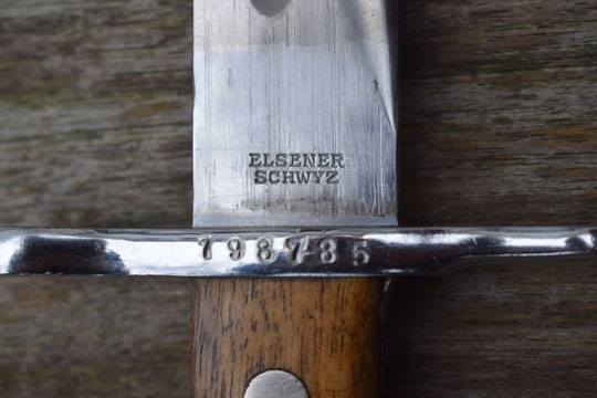 Swiss M 1914 Plated Pioneer bayonet by ELSENER SCHWYZ. (ABC N 1314)(K 389) (JN 185-3)