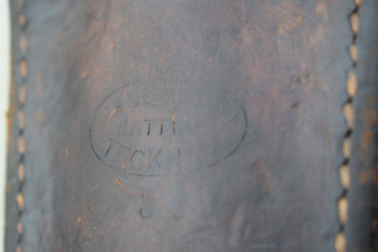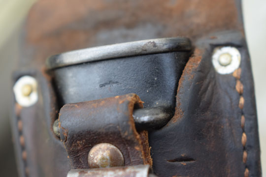 Excellent brown leather M 1914 Pioneer bayonet frog with Swiss makers name and date on the reverse side: W.H. SCHOLER, Sattler, TECKNNOU '33