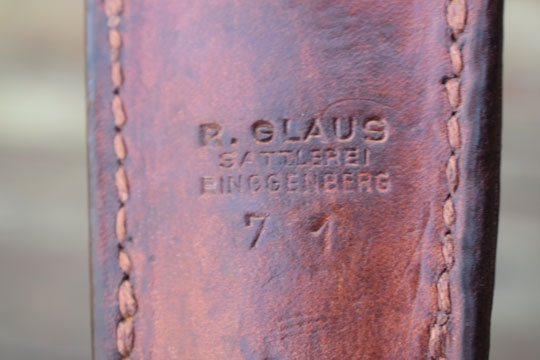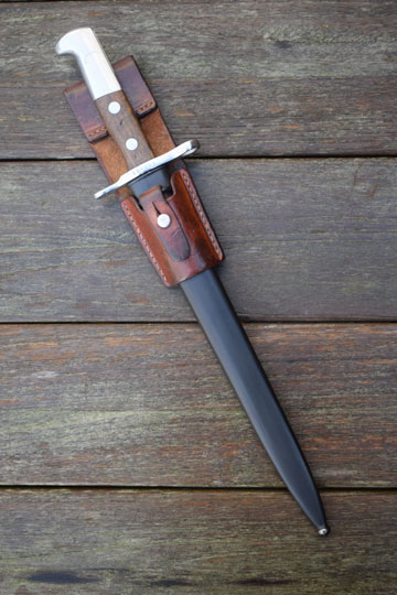 Comes with its genuine and Excellent brown leather bayonet belt frog as found. Reverse side with the frog makers name and residence : R. GLAUG over SATTLEREI over RINGGENBERG