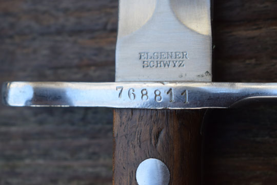 Swiss M 1918 bayonet by ELSENER -SCHWYZ. (ABCN 588-1) ( K 199)(JN 187-1)(K199)