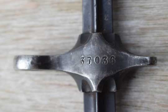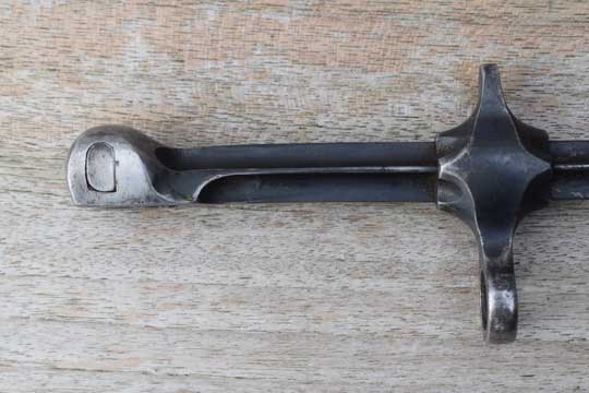 Scars bayonet, made from the blades of old M 1863 Peabody or M 1871 Vetterli socket bayonets. This one was made from a M 1871 Vertelli socket bayonet. These are also designated M 1889/92 and were used by bicycle troops.