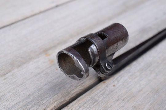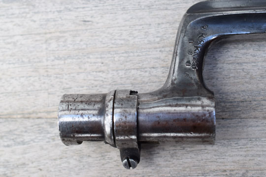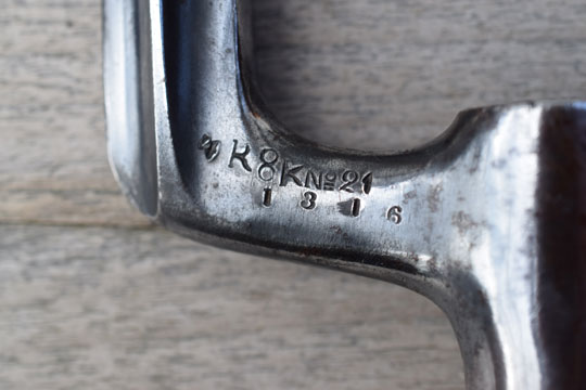 There is a unit marking: 4. R. 8. K. No.24 (= 4th Regiment, 8th Company. Rifle No. 24) in one line on top of the socket.