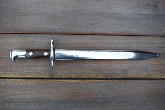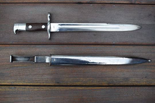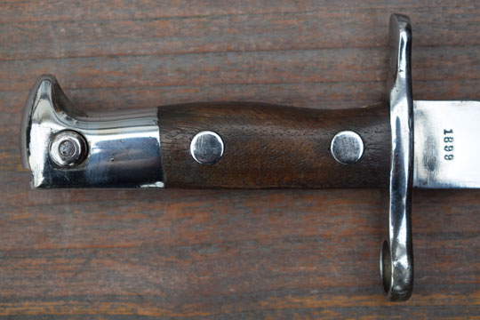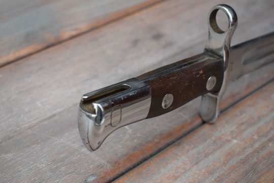 This model was modified and used as a dress bayonet by cadets of the Academy of Key West and other US military academies and replaced the short bladed model.