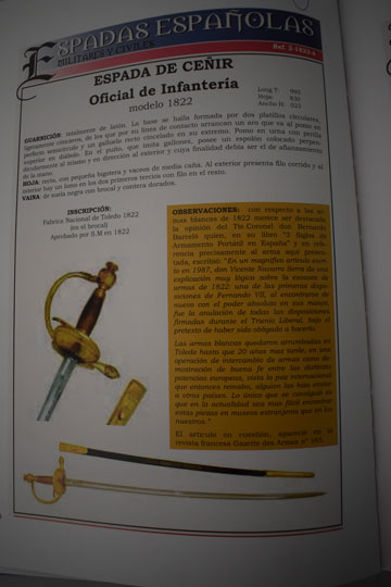 Spanish M 1822 Infantry officers spadroon (Ref. Espadas Espanolas, Page 144)