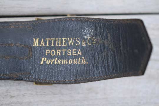 This great adjustable belt is marked in three lines ; MATTHEWS & C0. - PORTSEA, Portsmouth. Belt length: 92 cm.
