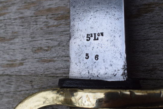 The right ricasso is unit marked: 5E L on over 56(= 5e Line Regiment, weapon 56).