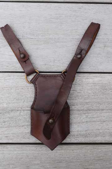 "Pre-WWII (1928) bruin lederen sabel / klewang drager voor het Sam Browne draagstelsel "/ Pre-War (1918) Dutch brown leather officers sword/klewang Sam Browne frog.