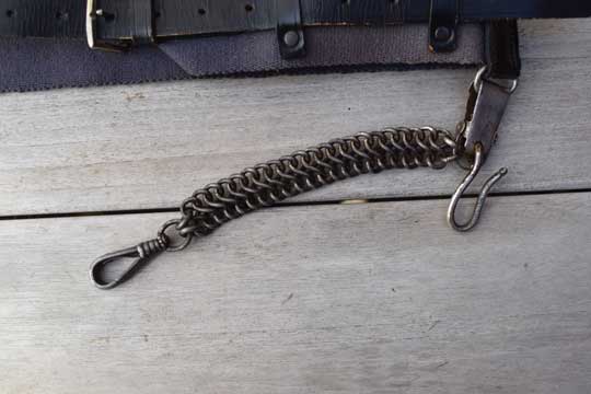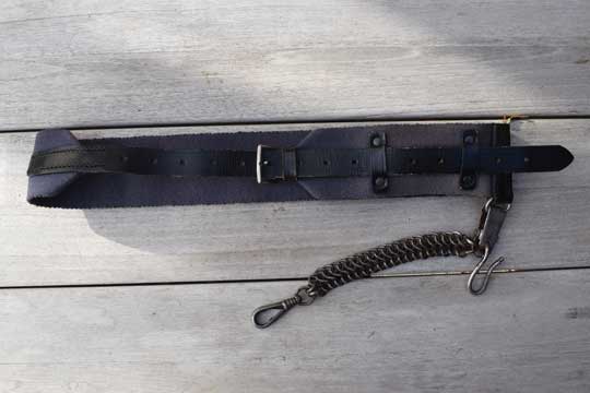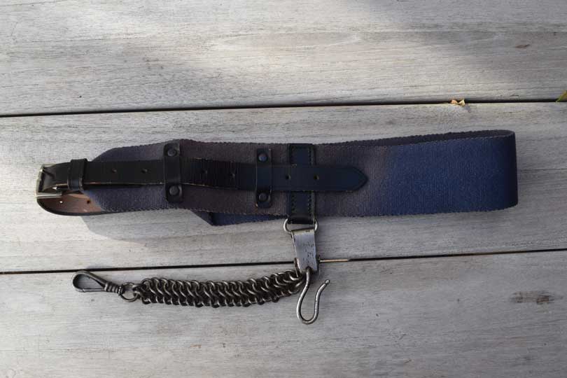 Dutch Military full dress blue canvas sword belt with sword chain. Under coat model.