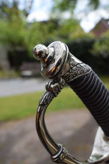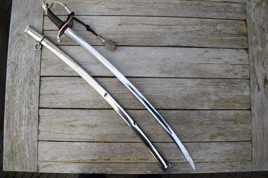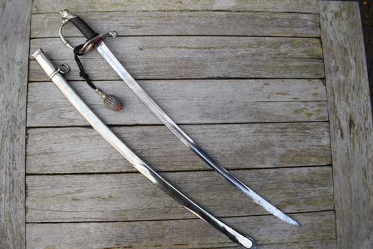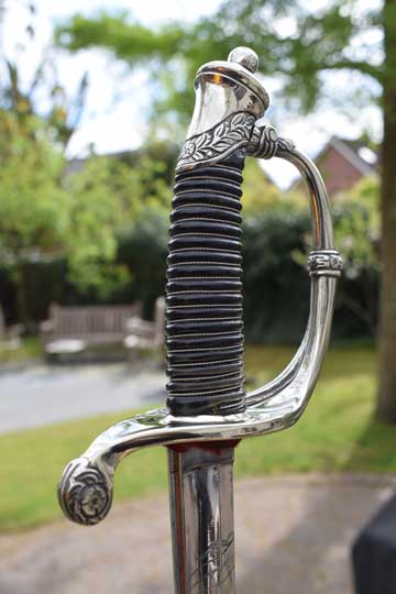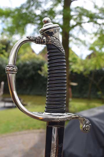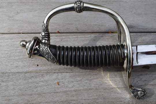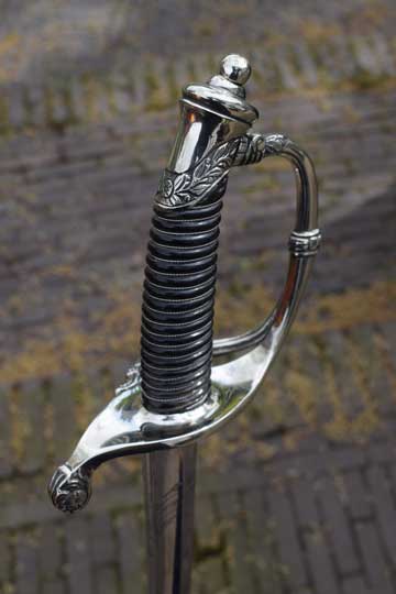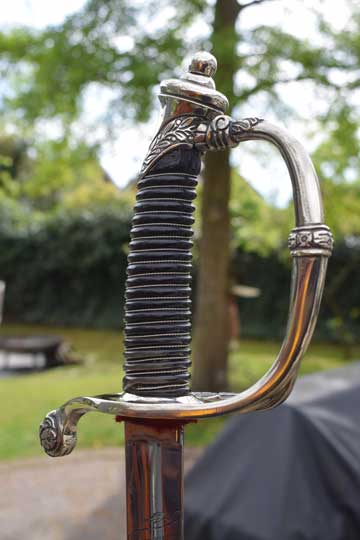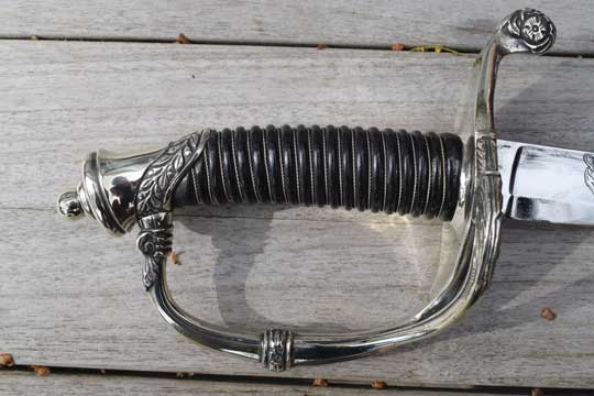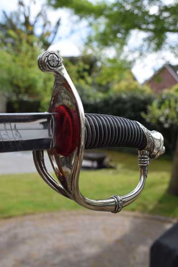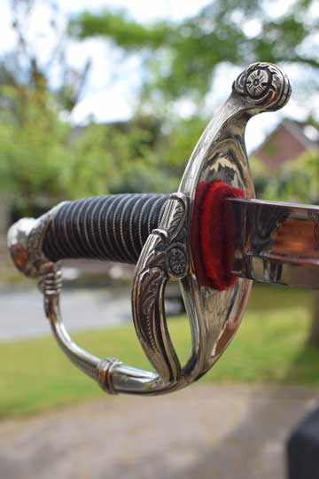 This Home Guard officers model differs from the M 1852 infantry officers sword in its finish only. The hilt of the M 1852 Home Guard model is always in Berlin-Silver, the Infantry model is finished in brass.