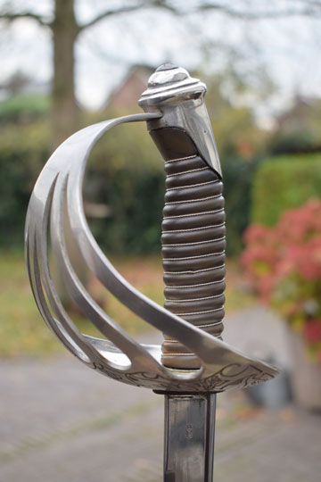 This sword was adopted in 1897 and was already replaced in 1912 by a complete different model: M 1912 infantry officers sword. It still has a ceremonial function for officers of the Dutch Guard Fuselier Regiment Princes Irene. A Dutch infantry Guard Regiment, founded in England during WWII and active during and after D-day for the liberation of occupied Europe.