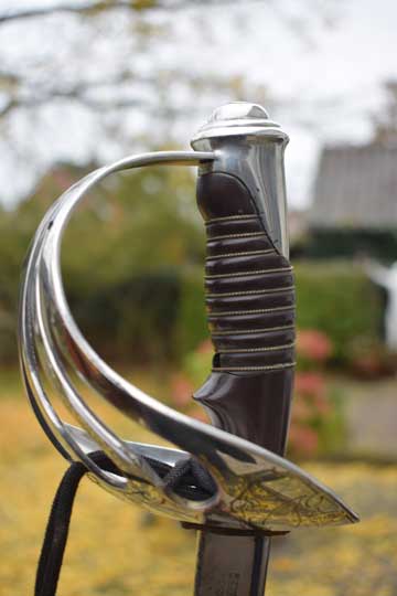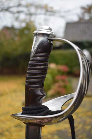 This sword was adopted in 1897 and was already replaced in 1912 by a complete different model: M 1912 infantry officers sword. It still has a ceremonial function for officers of the Dutch Guard Fuselier Regiment Princes Irene. A Dutch infantry Guard Regiment, founded in England during WWII and active during and after D-day for the liberation of occupied Europe.