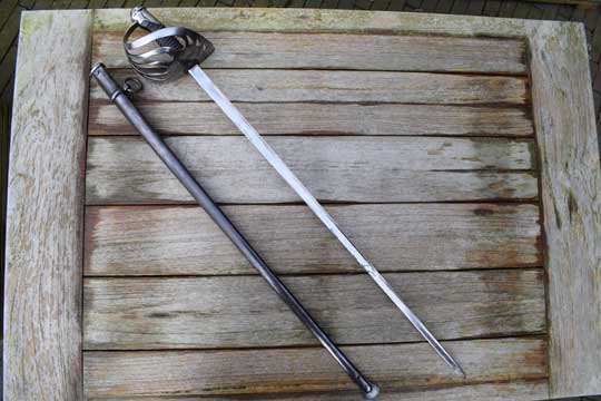Very rare and impressive heavy experimental Dutch officers sword intended for use by mounted Train officers, but it was also used by mounted Artillery officers in piece time.
