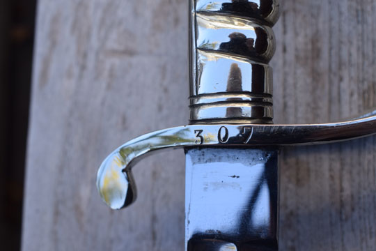 "Gemeente Politieagent sabel, rond 1900". / Dutch municipal police constable short sword around 1900. Serial number: 307 on the crossguard.