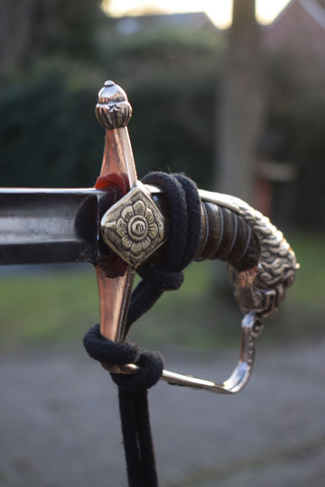 Comes with a very good officers sword knot with a black cord, silver buillions and an orange core.