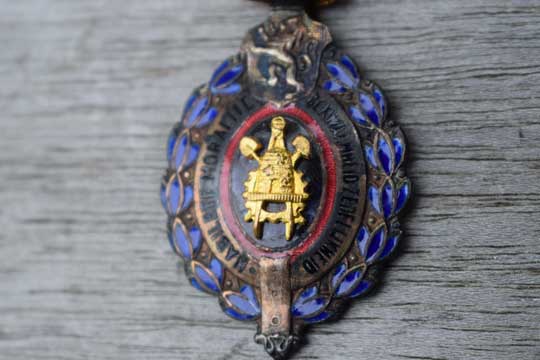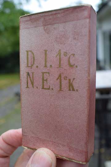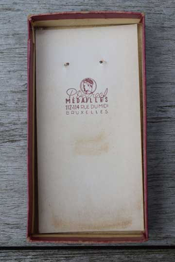 It comes in its original and genuine red paper box marked with the makers name in the inside: P. De Greef, MEDAILLES, 112-114 DUMIDI- BRUXELLES. De outside is marked D.I. 1e C. over N.E. 1e C.