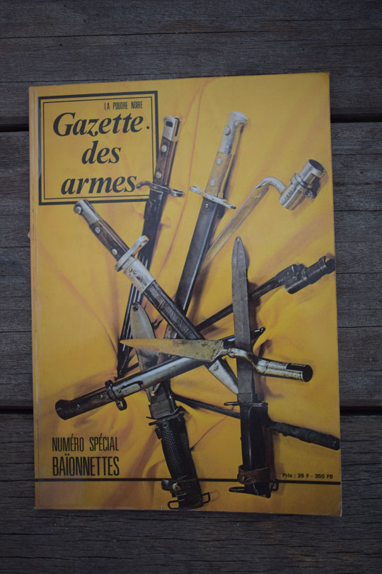 Book: Gazette des Armes. "Out of Print "bayonet reference book in the Frence language. In fact this is a Frence copy of Volume one of the book Bayonets of the World from Paul Kiesling.127 Pages. Published in 1974