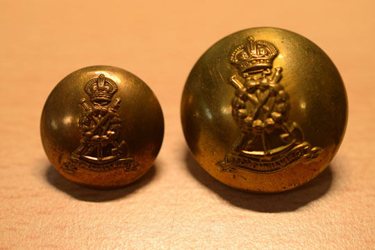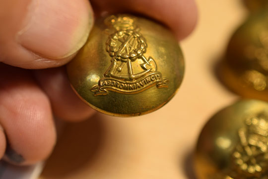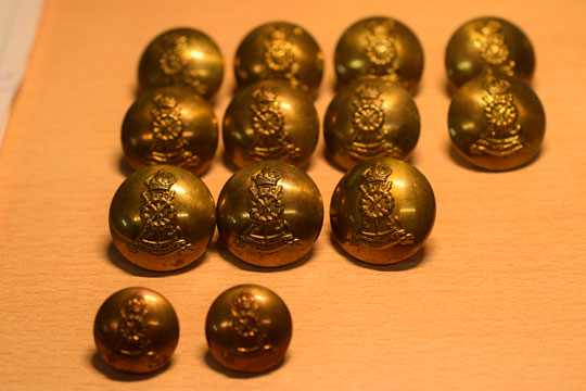 Lot of 11 large and 2 small English WWII brass Pioneer officer service dress buttons. (RM)