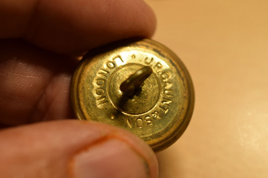 Lot of 13 brass WWII English Pioneer officers service dress buttons. 11 large (2,6 cm) smooth background shiny brass buttons showing a crown over a crossed spade, axe and rifle with a laurel wrench over LABOR OMNIA VINCIT in a scroll. 2 small (1,9 cm) smooth background shiny brass buttons showing a Dutch rampant Lion. All are marked on the reverse side J. R. GAUNT & SON.- LONDON.