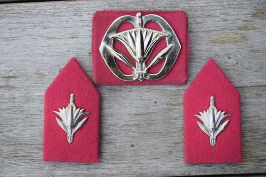 Set of 1 Post WWII Dutch Military Administration cap emblem and 2 collar padges. (RM)