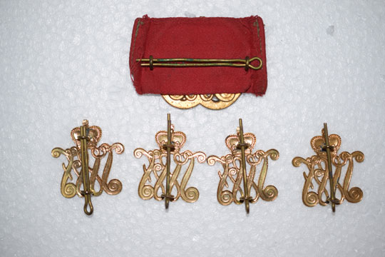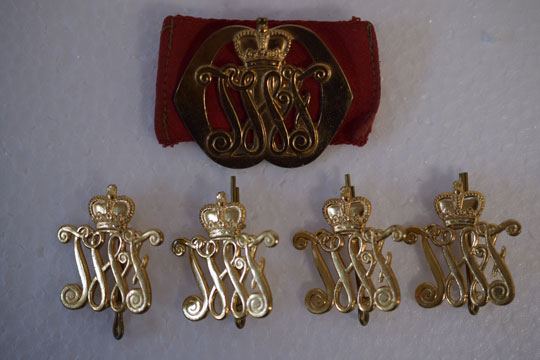 Set of 1 Post WWII WILLEM FRISO Regiment cap emblem and 4 collar emblems. (RM)