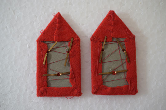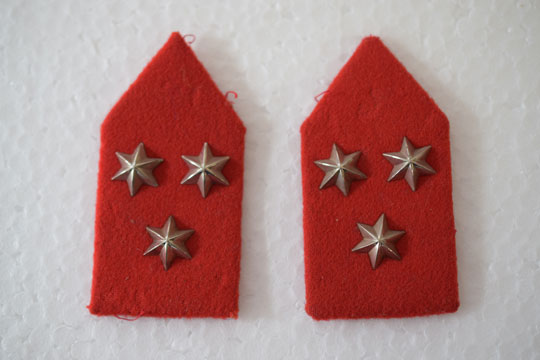 Set of 2x Post WWII Dutch officers collar pips on red panels. red collar panel with three silver stars. (Captain)
