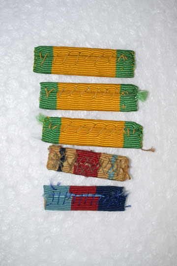 Set of 5 WWII baton: 3x: Ribbon War service cross, 1x: African star and 1x: 1939-1945 baton.