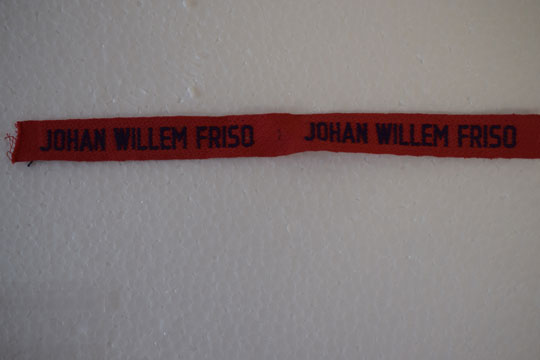 Set of 2 Dutch Post WWII shoulder flashes: Red cloth and black letters: JOHAN WILLEM FRISO.