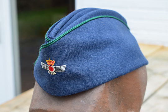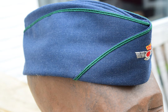 Spanish Air Force side cap. Minty blue fabric side cap as carried by Spanish air force personal with beautiful badge and green finish. Crown over a winged red core. High quality produced with leather liner.